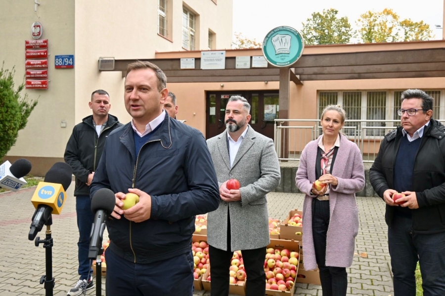 "Wcześniej w szkołach podstawowych były programy dedykowane młodszym uczniom, kiedy przekazywano dzieciom warzywa i owoce do jedzenia, natomiast zawsze pomijano szkoły ponadpodstawowe. Teraz chciałabym te nawyki utrwalać, również u uczniów starszych. Bardzo serdecznie dziękuję za to, że dzisiaj otrzymaliśmy takie wsparcie. Myślę, że te jabłka w szkole gastronomicznej na pewno się nie zmarnują, część zostanie zjedzona przez moich uczniów, mam 726 uczniów, więc na pewno dzieciaki bardzo chętnie te jabłka zjedzą, natomiast pozostałą część postaramy się przetworzyć, tak aby się nie zmarnowały, czyli na musy jabłkowe, kompoty, szarlotki, również wszystko dla naszych uczniów. Gdyby był to program długofalowy, gdzie uczniowie mogliby co tydzień dostawać jabłka do jedzenia, myślę, że to wyrobiłoby trwałe i zdrowe nawyki wśród młodych ludzi" - zauważyła Zofia Wrześniewska, dyrektor Zespołu Szkół Gastronomicznych w Łodzi.