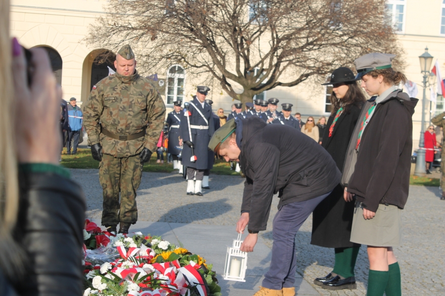 W czwartek  11 listopada  odbył się tu ceremoniał wojskowy , rozpoczęty złożeniem   przez dowódcę  Garnizonu Radom meldunku Wiceministrowi Obrony Narodowej Wojciechowi Skurkiewiczowi. W wypowiedzi  okolicznościowej W. Skurkiewicz  powiedział m.in. - Nieprzypadkowo od szeregu dni prowadzona jest akcja "Murem za polskim mundurem". To jest akcja wsparcia dla tych, którzy są na granicy, którzy zaraz mogą być na granicy, ale również dla ich rodzin. Zachęcam   do  wspierania  polskich żołnierzy, funkcjonariuszy straży granicznej, policji, gdyż oni na to zasługują. Służą  przecież Rzeczypospolitej, wypełniając słowa roty przysięgi.